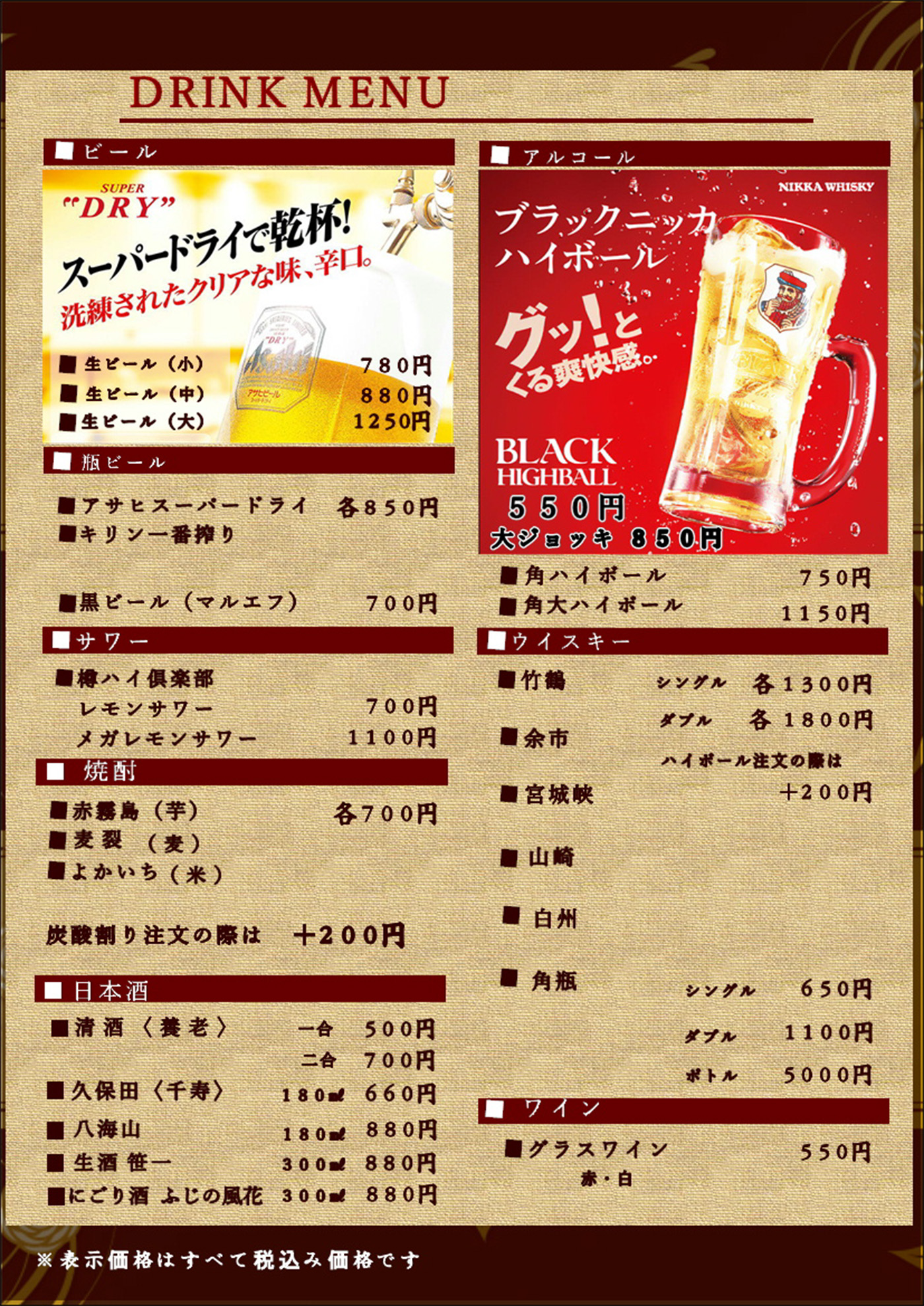 ドリンクメニュー